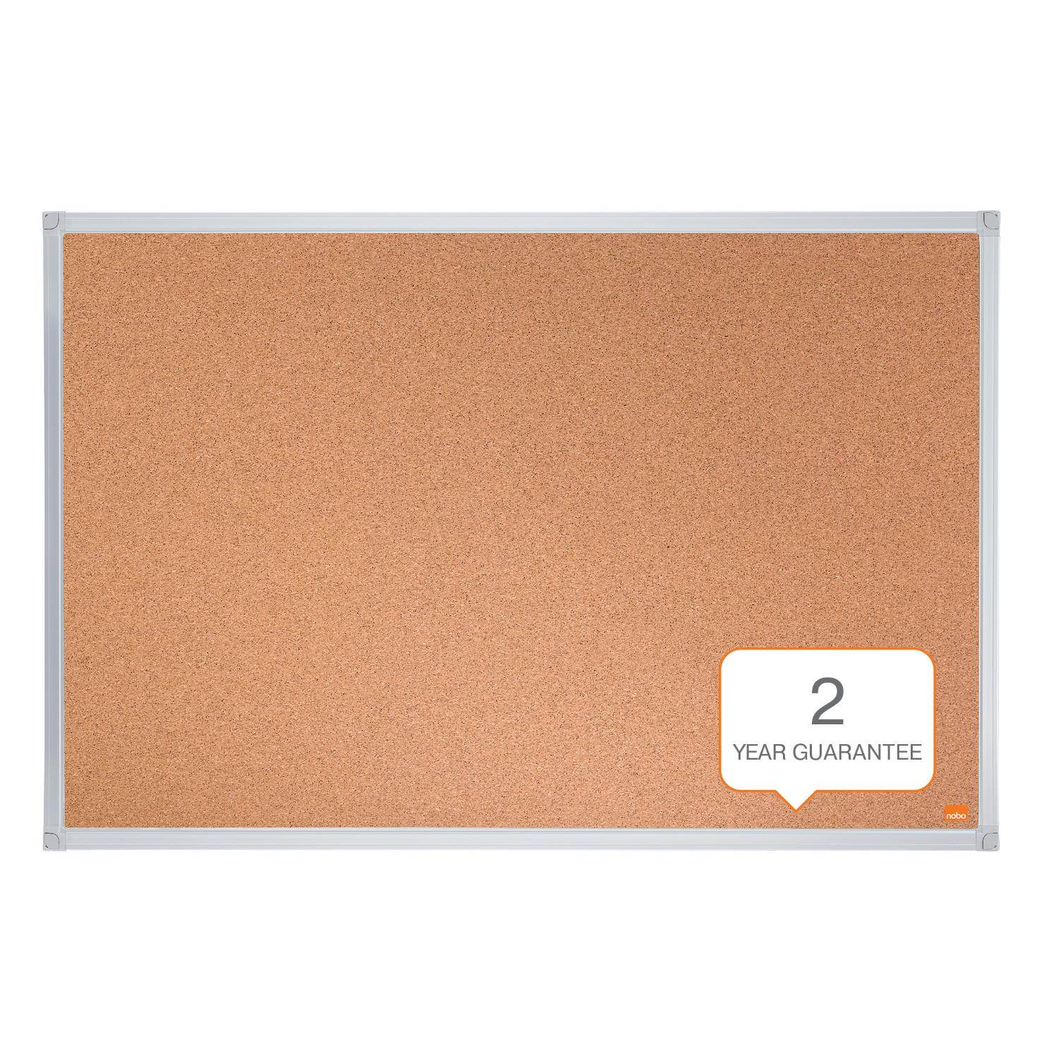 "Korková tabule s rámem z eloxovaného hliníku ve stříbrné barvě. Možnost vertikálního nebo horizontálního upevnění na stěnu pomocí úchytů v rozích nebo zavěšení na držácích. Vysoce kvalitní korkový povrch umožňuje snadné připínání oznámení a poznámek.