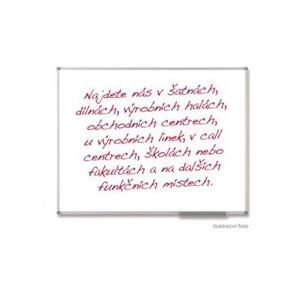 Bílý lakovaný povrch. Pro popisování stíratelným fixem. Odkládací lišta.