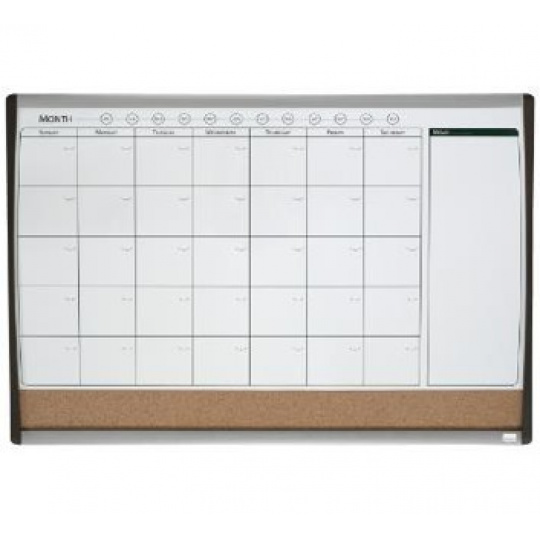 Kombinovaná tabule s měsíčním kalendářem je tvořena magnetickou tabulí s kalendářovou tabulkou stíratelnou za sucha a částí s korkovou nástěnkou. Obě části jsou zasazeny do výrazného černého a stříbrného rámu s kulatými rohy. Obsahuje pěnovou lepicí pásku, jeden magnetický černý popisovač ReWritable s mazací houbou a dva magnety. Rozměry 585 × 430 mm.