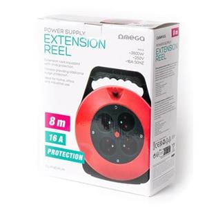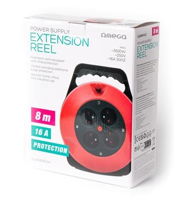 OMEGA 4-ZÁSUVKOVÝ PRODLUŽOVACÍ KABEL ZATAHOVACÍ BUBEN 8M 16A FRANCOUZSKÁ ZÁSTRČKA