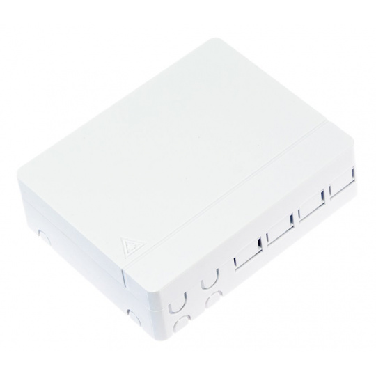 Domácí 4-otvorová ukončovací krabice, do které lze namontovat adaptéry SC simplex nebo LC duplex. Výrobek je uzpůsoben pro montáž na stěnu, uvnitř má odklápěcí vaničku s místem pro návarky a ukrytí náhradního kabelu. Otvor v zadním panelu je široký - snadno jím protáhnete kabel se špičkou.