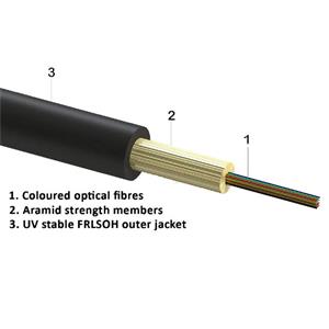 Použitá jsou vlákna G.657A1. Konstrukce kabelu dovoluje poloměr ohybu až 1,5 cm (bez zátěže), 3 cm (při zátěži), což umožňuje s kabelem pracovat jako s běžným UTP kabelem.