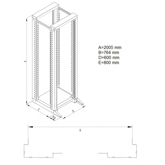 Otevřený 19" stojan RSX 42U dvoudílný 800hl.