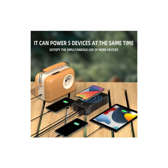Díky podpoře rychlonabíjení PD60W nemusíte zbytečně dlouho čekat na plné nabití powerbanky a můžete rovnou vyrazit za dobrodružstvím. Rychlé nabíjení podporují také výstupní porty USB-A a USB-C s výkonem až PD65W. Díky výstupnímu DC jack 2251 portu můžete připojit i notebook. S tímto výkonným zdrojem energie budete mít vždy dostatek elektrického výkonu, abyste udrželi svá zařízení v provozu.?? Wireless bezdrátové nabíjení 15W se vám zase může hodit, pokud se ocitnete v situaci bez kabelu.