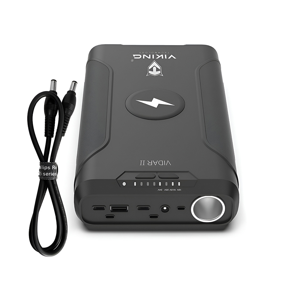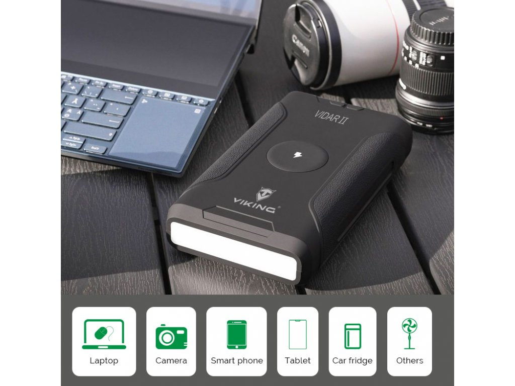 Powerbanka Viking VIDAR II je spolehlivý pomocník pro každého, kdo potřebuje mít energii vždy po ruce – ať už na vícedenním kempování, při práci v terénu nebo na cestách. S kapacitou 72000?mAh, kompaktními rozměry a širokým výběrem výstupů pohodlně nabijete více zařízení současně – od mobilních telefonů přes notebooky až po 12V spotřebiče.