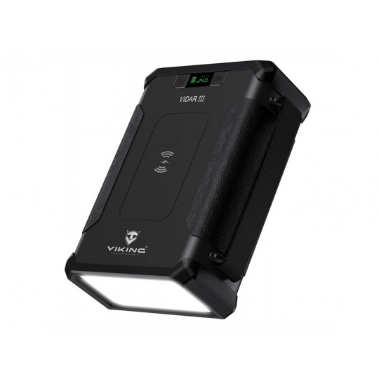 Outdoorová powerbanka Viking VIDAR III • Kapacita: 96000mAh/307.2Wh • Maximální výkon: 180W • Zabudované LED světlo • Široká škála vstupů a výstupů (USB-A, USB-C, Cigaretová zásuvka, DC-jack, WIRELESS Qi) • Možnost solárního napájení • Funkce Pass-Through • Odolnost IP65