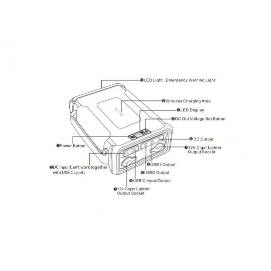 S kapacitou 96000?mAh (307,2?Wh) a maximálním výkonem až 180?W spolehlivě napájí širokou škálu zařízení – od mobilních telefonů přes notebooky až po 12V spotřebiče. Nabízí výstupy USB-A (2x), USB-C (1x), DC-JACK pro notebooky, dvě cigaretové zásuvky a navíc i bezdrátové nabíjení WIRELESS (Qi).