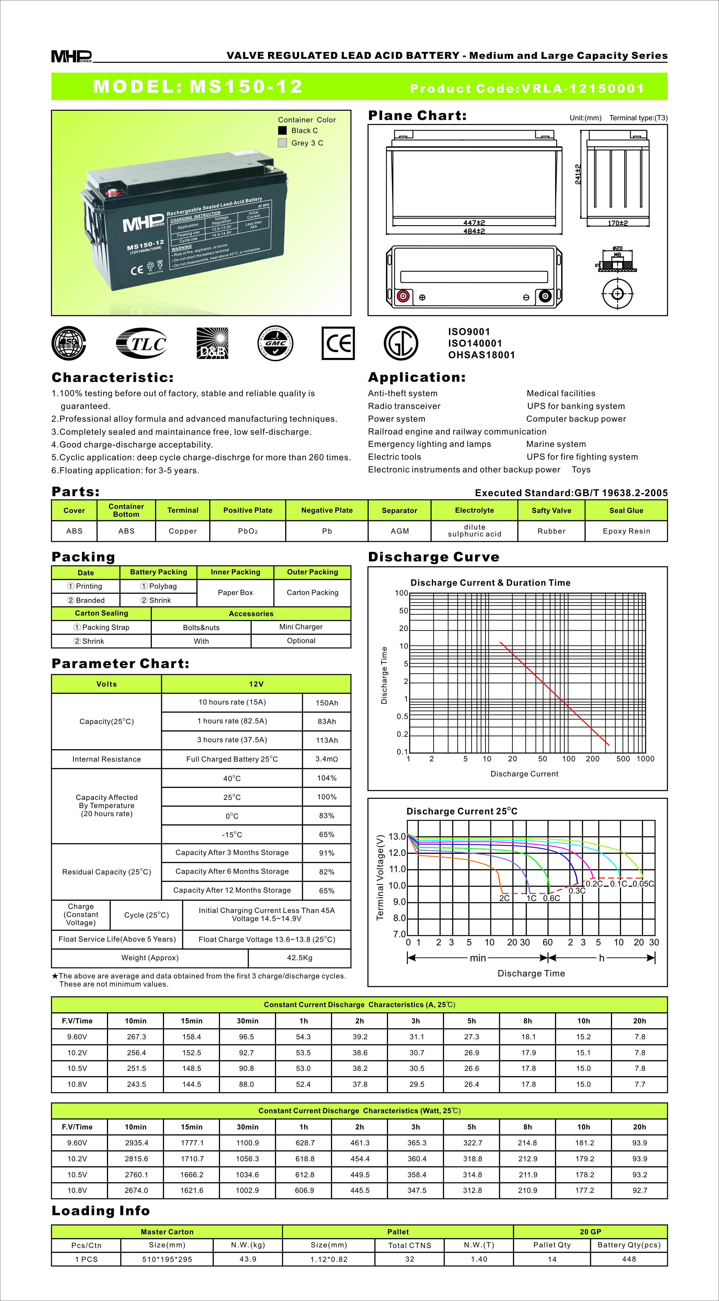 Pb akumulátor MHPower VRLA AGM 12V/150Ah (MS150-12