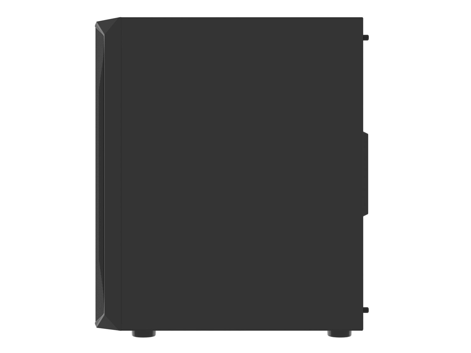 Futuristický geometrický tvar se bude líbit jak hardcore hráčům, tak i těm, kteří dávají přednost decentnějšímu designu. Levý boční panel z tvrzeného skla je příležitostí k odhalení vnitřku skříně a výkonných komponent ukrytých uvnitř - také s RGB, zejména proto, že instalované ventilátory jsou předsvětlené.