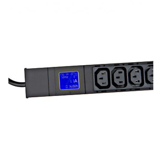Napájecí panel PDU řady IT METER LINE představuje inteligentní řešení napájení v datových rozvaděčích. Konfigurace zásuvek: 12x C13. Vyznačuje se měřící přesností +/- 1% všech základních elektrických veličin jako jsou napětí, proud, výkon, frekvence, fázový posun nebo energie. Hodnoty se poté zobrazují na podsvíceném LCD displeji.