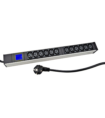 Napájecí panel PDU řady IT METER LINE představuje inteligentní řešení napájení v datových rozvaděčích. Konfigurace zásuvek: 12x C13. Vyznačuje se měřící přesností +/- 1% všech základních elektrických veličin jako jsou napětí, proud, výkon, frekvence, fázový posun nebo energie. Hodnoty se poté zobrazují na podsvíceném LCD displeji.