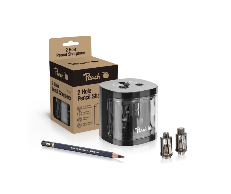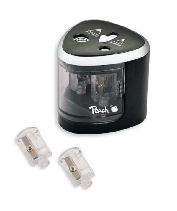 PEACH PO102 - elektrické ořezávátko na tužky, 4xAA, dětský zámek, černé