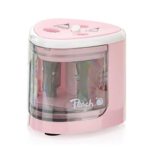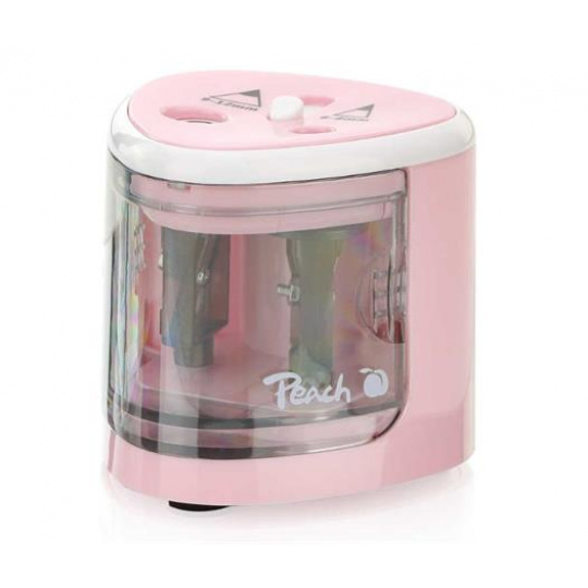 PEACH PO102 - elektrické ořezávátko na tužky, 4xAA, dětský zámek, růžové