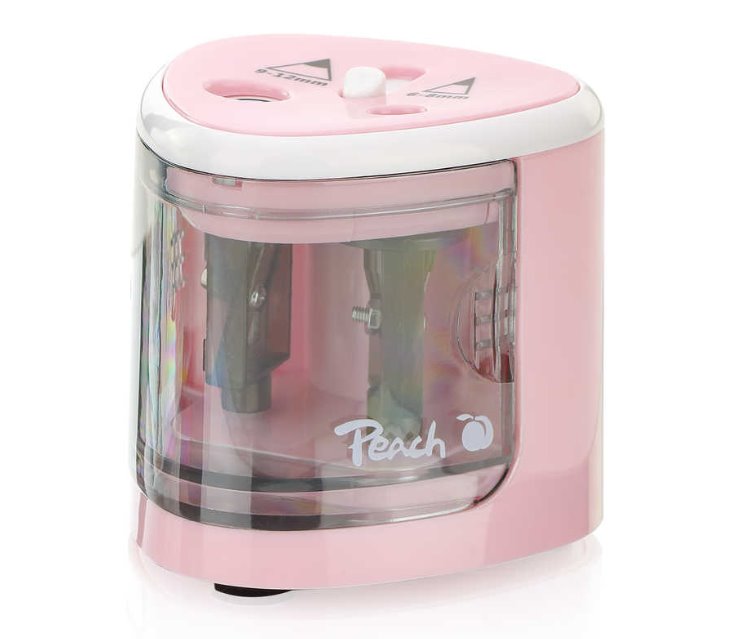 PEACH PO102 - elektrické ořezávátko na tužky, 4xAA, dětský zámek, růžové