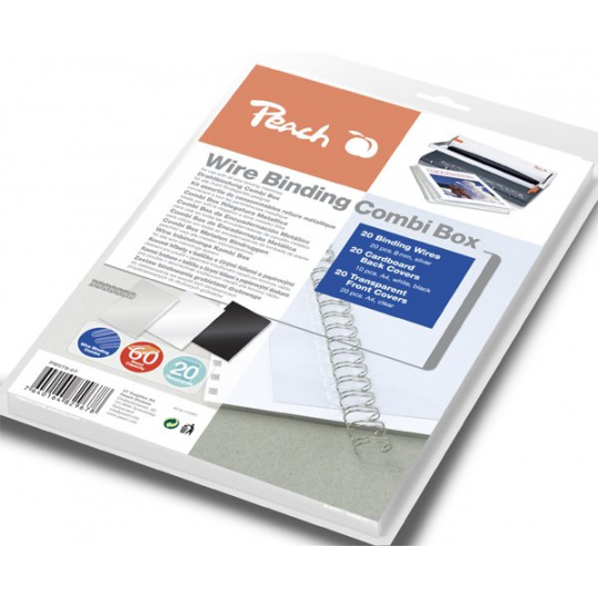 PEACH vazací drátěný Binding Combi Box PW079-07, 20 drát 8 mm, 10+10 obal, 20x transparentní obal