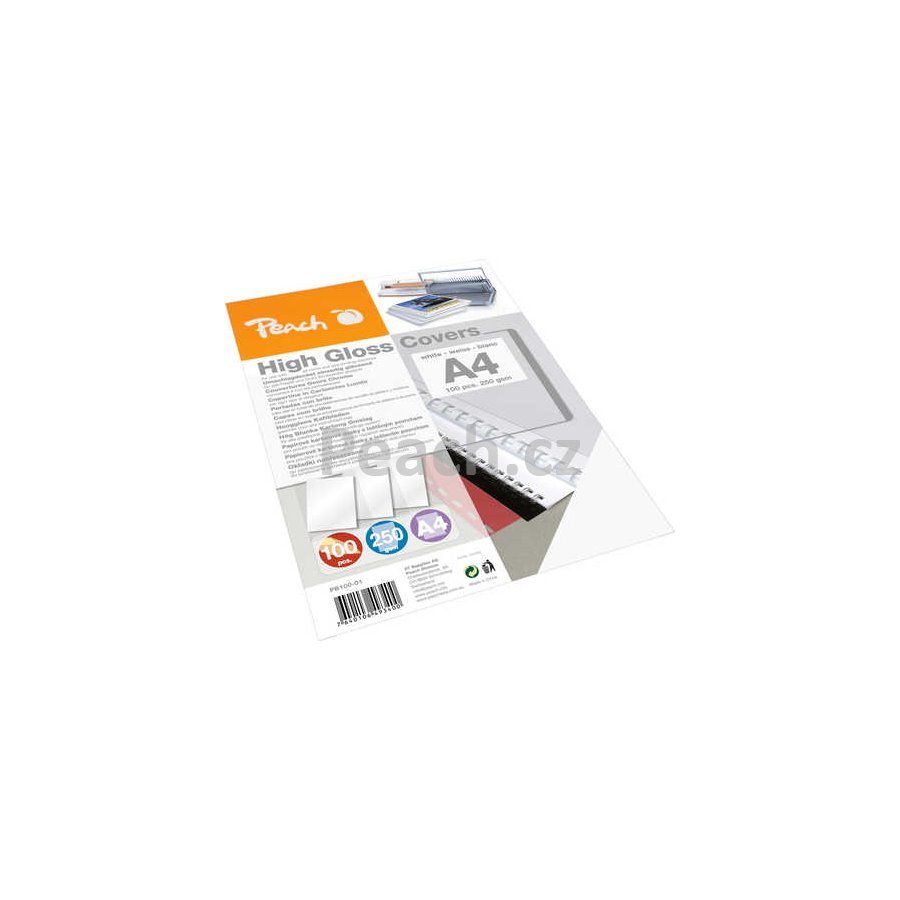 PEACH vazací přední desky 250 gsm A4, lesklé, bílá (100) 1 balení obsahuje 100 ks PB100-01