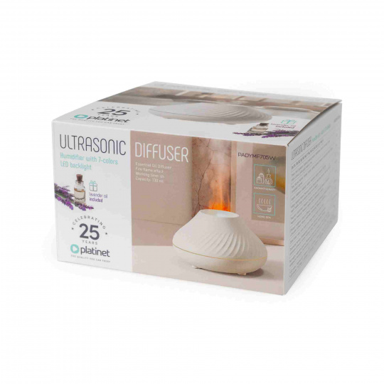 PLATINET FLAME AROMA DIFUZÉR 130ML 6,5W WHITE + 10 ML LEVANDULOVÝ ESENCIÁLNÍ OLEJ