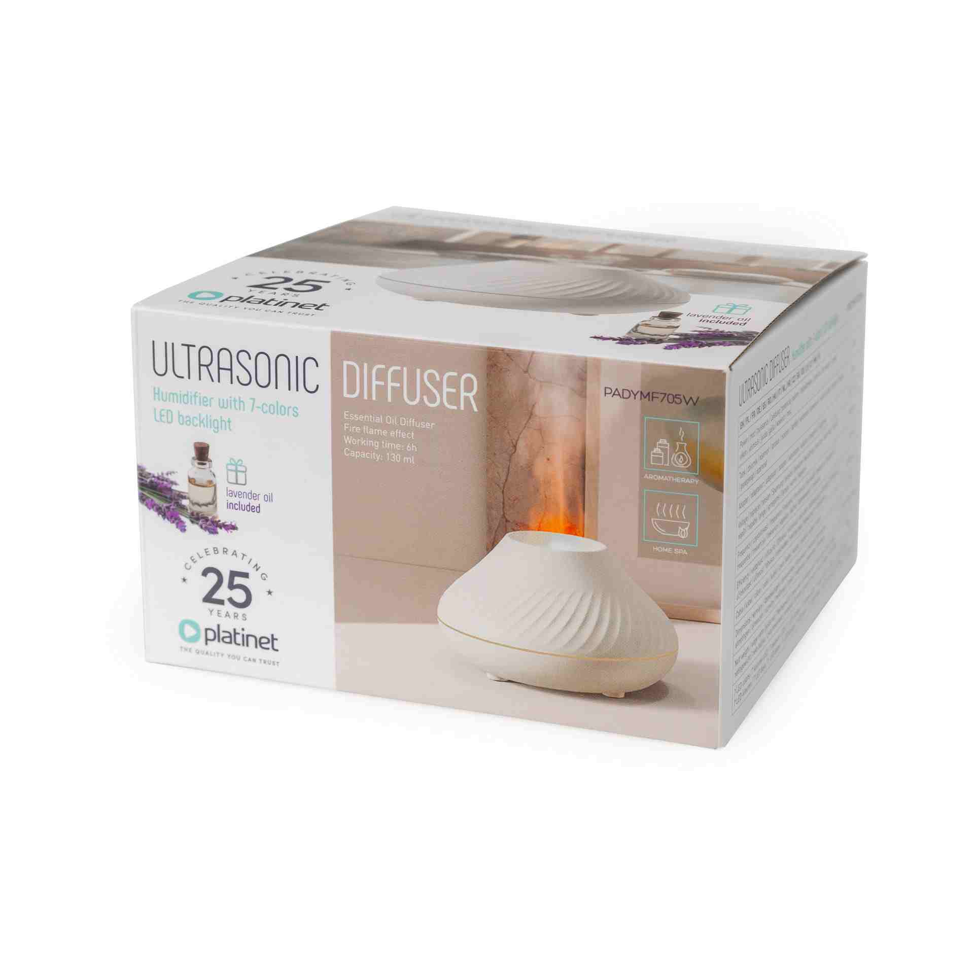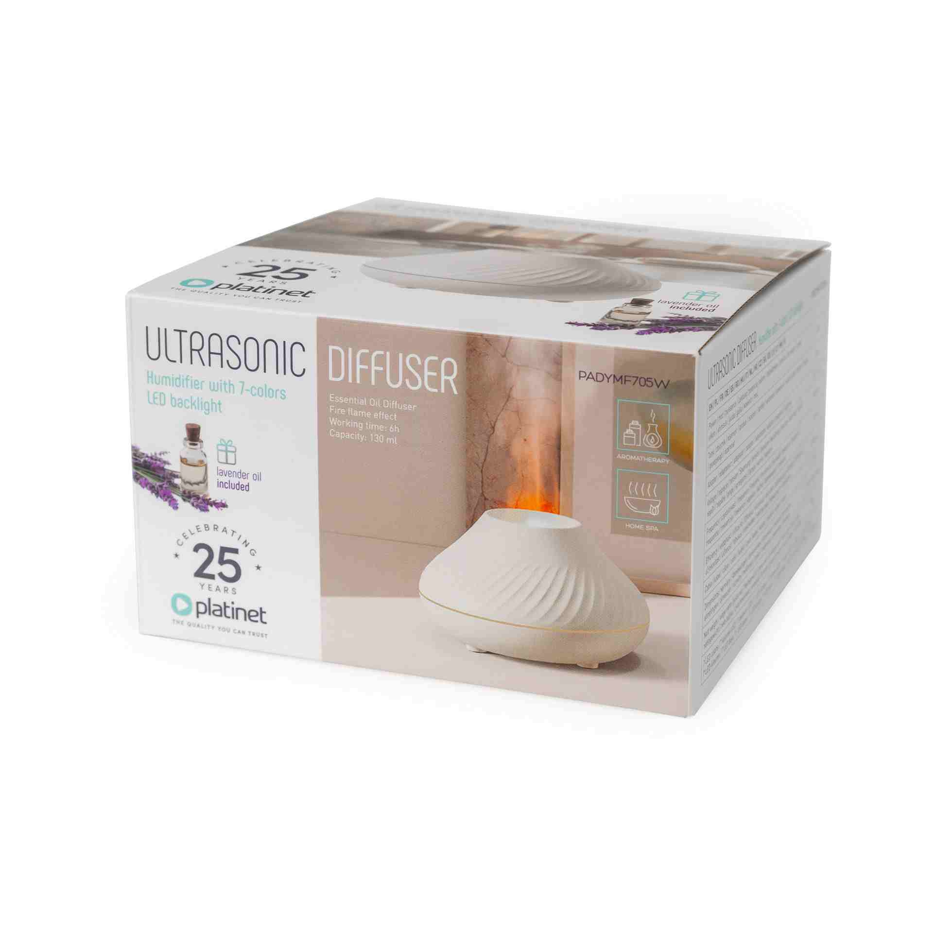 PLATINET FLAME AROMA DIFUZÉR 130ML 6,5W WHITE + 10 ML LEVANDULOVÝ ESENCIÁLNÍ OLEJ