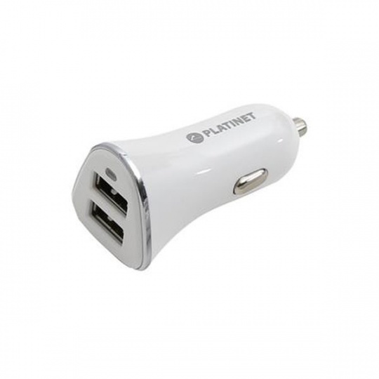 PLATINET nabíječka do auta 2xUSB 3,4A bílá + microUSB kabel 1m