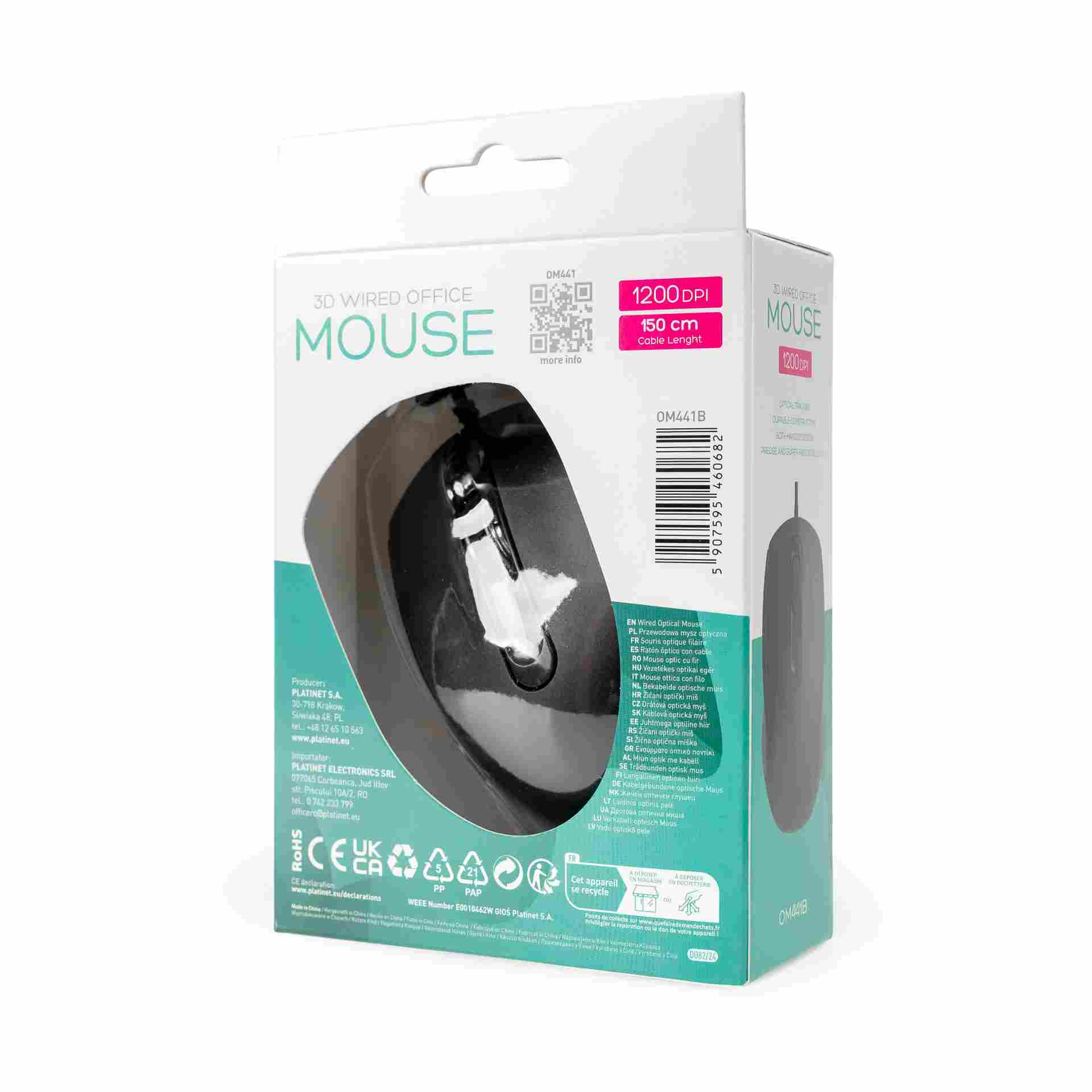 PLATINET OMEGA PC MYŠ 3D, OFFICE, 1200DPI, 1.5M USB-A ČERNÁ
