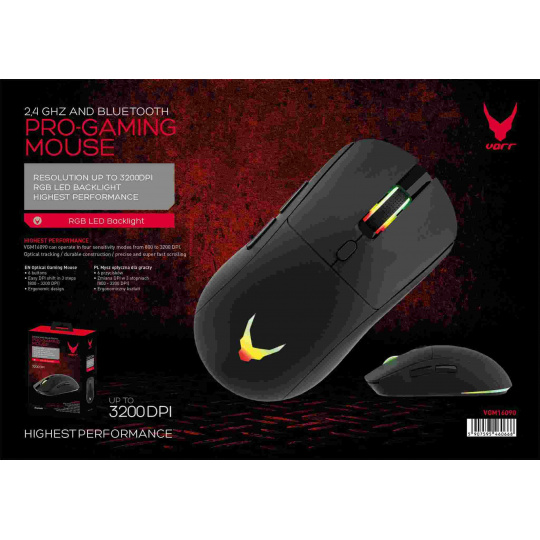 Bezdrátová herní myš Varr je dokonalým řešením pro hráče, kteří oceňují přesnost, ergonomii a spolehlivost.
