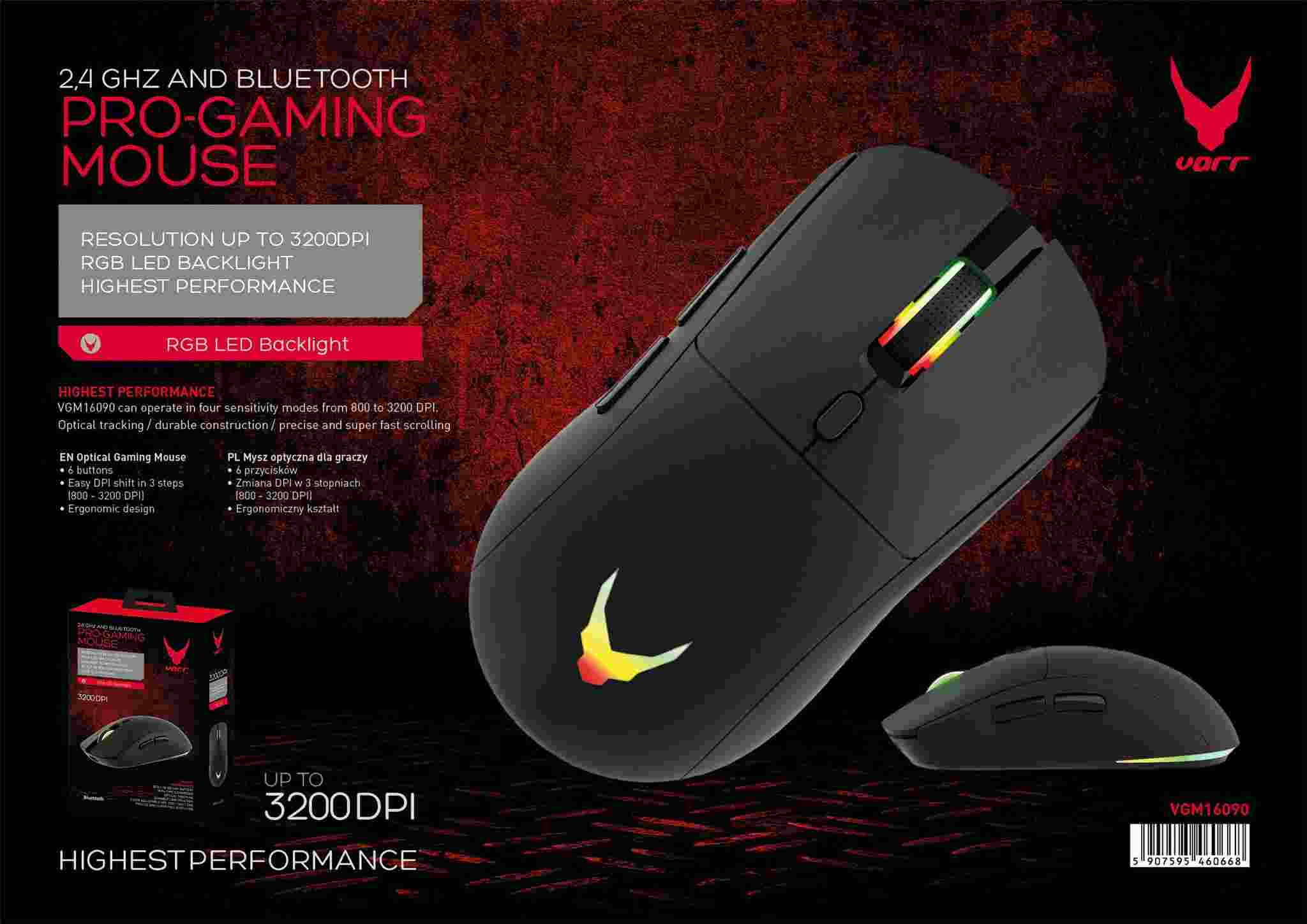 Bezdrátová herní myš Varr je dokonalým řešením pro hráče, kteří oceňují přesnost, ergonomii a spolehlivost.