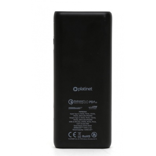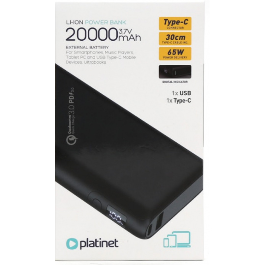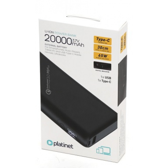 PLATINET POWER BANK 20 000 MAH PD65W QUICK CHARGE BLACK