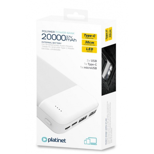 PLATINET POWER BANK 20000mAh Polymer ABS Texture White