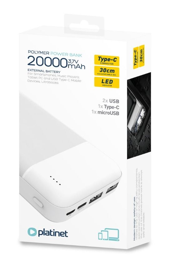 PLATINET POWER BANK 20000mAh Polymer ABS Texture White