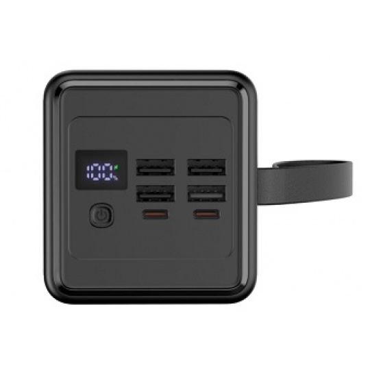 Je vybaven několika výstupními porty, včetně čtyř standardních portů USB-A, dvou portů Type-C, z nichž jeden slouží k nabíjení samotné powerbanky. Porty USB nabízejí výstup 5V/4,5A, 9V/2A a 12V/1,5A, zatímco port typu C nabízí výstup 5V/3A, 9V/2,22A a 12V/1,67A, což vám umožní rychle nabíjet různá zařízení.
