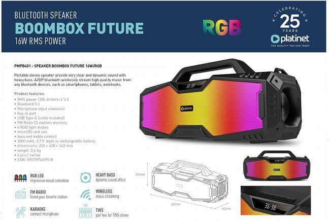 PLATINET SPEAKER BOOMBOX FUTURE 16W RGB