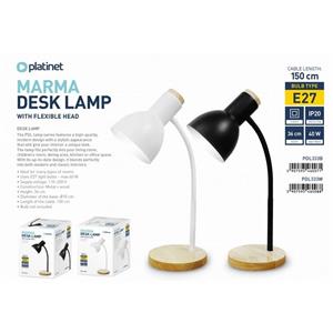 PLATINET stolní lampa MARMA E27, dřevěná základna, bílá