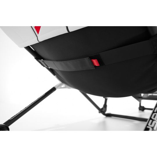 Nastavitelná bederní i nožní opora pro dlouhé a pohodlné závodní seance.