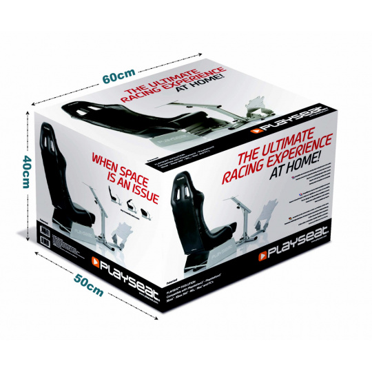 Playseat® Evolution má jedinečný, patentovaný skládací systém pro snadné a rychlé skladování. Po složení lze závodní sedadlo umístit pod jakýkoli běžný stůl nebo stůl."