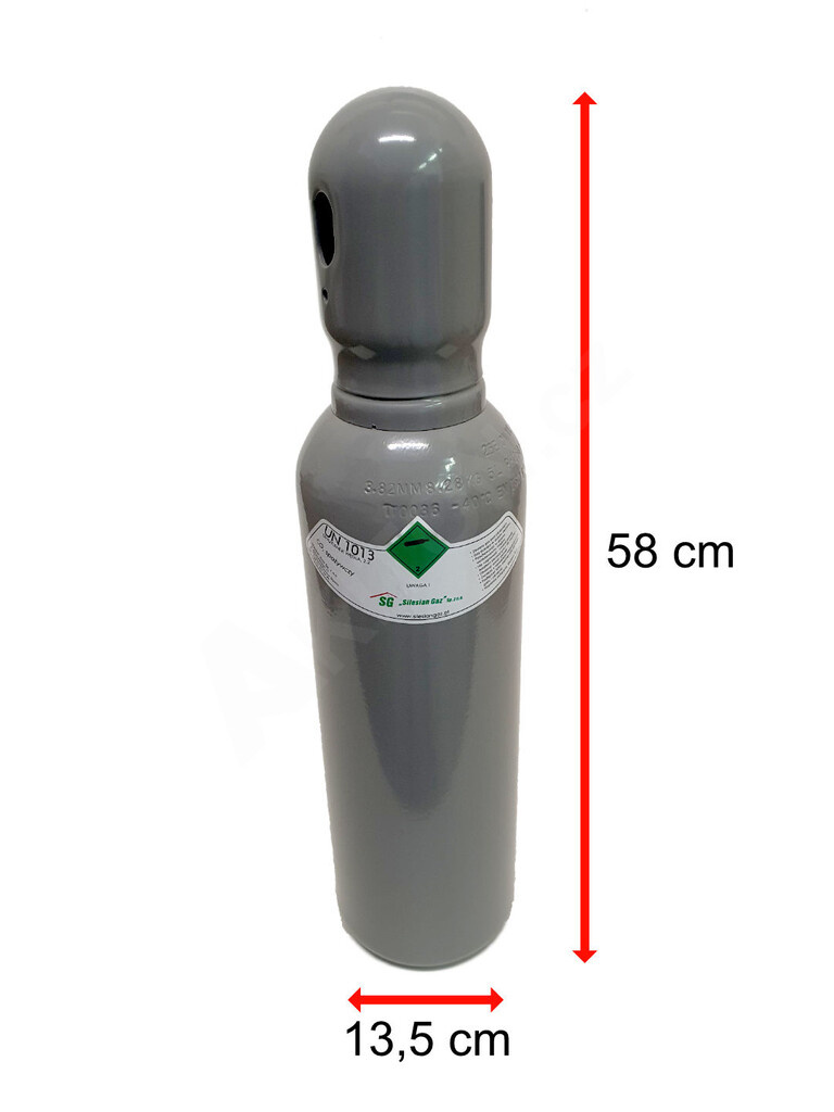 Zcela nová tlaková láhev s náplní, plněná vysoce kvalitním oxidem uhličitým v potravinářské kvalitě. Lze použít pro tlakování piva.