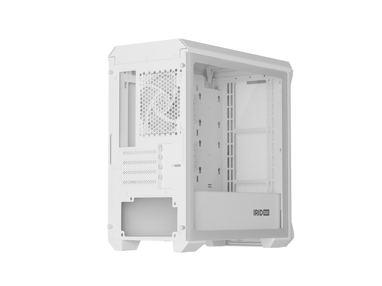 Irid 503 ARGB LITE má perforovanou přední stranu a boční panel je vyroben z čirého tvrzeného skla. Toto řešení umožní na první pohled vidět pracovní komponenty. Varianta LITE je také vybavena jedním ventilátorem OXAL ARGB 120, který zajišťuje podporu dostatečné cirkulace vzduchu uvnitř skříně.