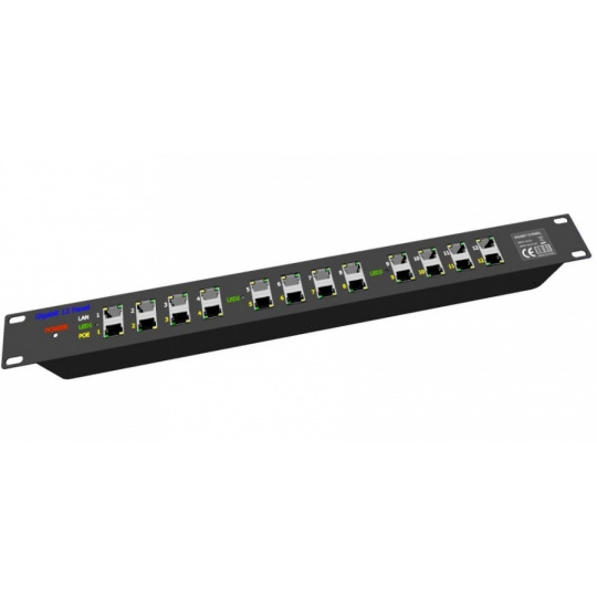 POE Gigabitový Patch panel Cat5 19" 12port 1U