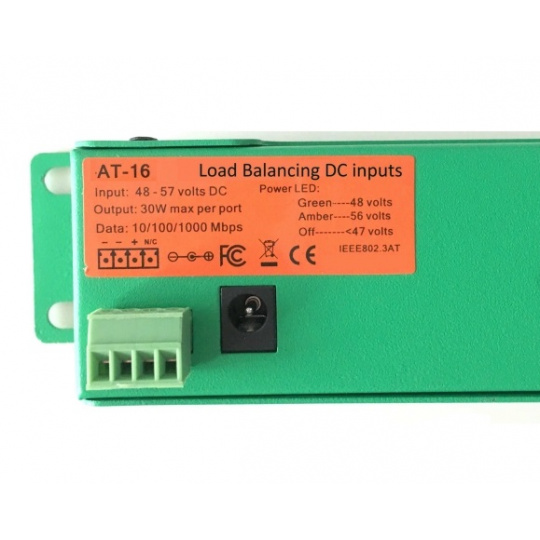 Panel integrující šestnáct gigabitových stíněných aktivních POE injektorů s napájecím rozsahem 48V (802.3af) - 57V (802.3at).