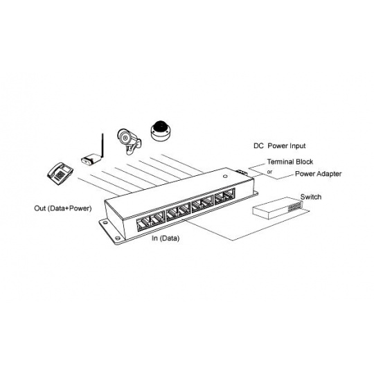 Přidáním tohoto průchozího panelu do rozvaděče získáte napájecí centrum, které jednoduchým způsobem zapojíte mezi stávající switch a patchpanel, který již vede k napájenému zařízení (IP kamera, IP telefon, bezdrátové prvky, apod.).
