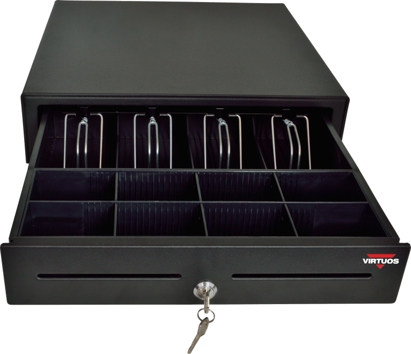 Pokladní zásuvka S-410C - s kabelem, pořadač 4/8, 9-24V, černá
