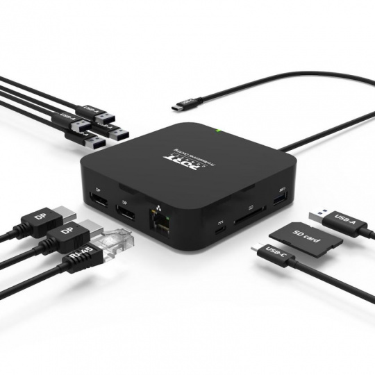 Dobíjejte s výkonem až 85W a přitom připojte 10 periferií přes jeden port USB-C. 2x4K Display Port, 5x USB-A, USB-C 85W PD, Ethernet, SDkarta.