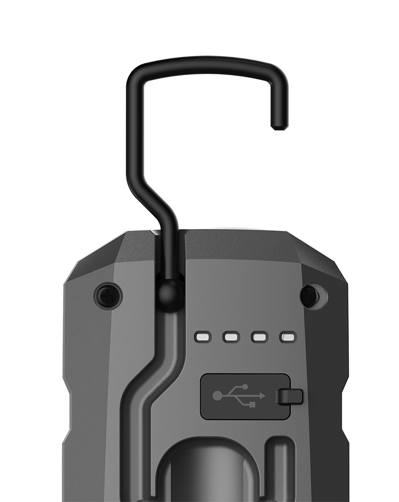 • Praktické možnosti uchycení: Na vrchu světla najdete háček pro zavěšení, magnet na spodní straně pro připevnění na kovové povrchy a ohebný držák, který umožňuje baterku postavit do požadovaného úhlu.