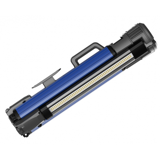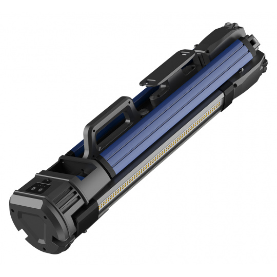 Svítivost 1500 lm - 5000 lm - 10000 lm (nízká - střední - vysoká) • barva světla studená - teplá, Ra 80 • zdroj světla SMD • kapacita baterie 14,6V / 4000mAh • doba nabíjení 4 hodiny (přes adaptér) • provozní čas 5 hodin (nízký režim) - 2,5 hodiny (střední) - 1 hodina (vysoký režim) • odolnost IPX4 / IK07 • 3 režimy svícení • hmotnost 5500 g • rozměry 220 x 15 x 15 cm (rozložené), 64,7 x 15 x 15 cm (složené) • 4 LED indikátory baterie