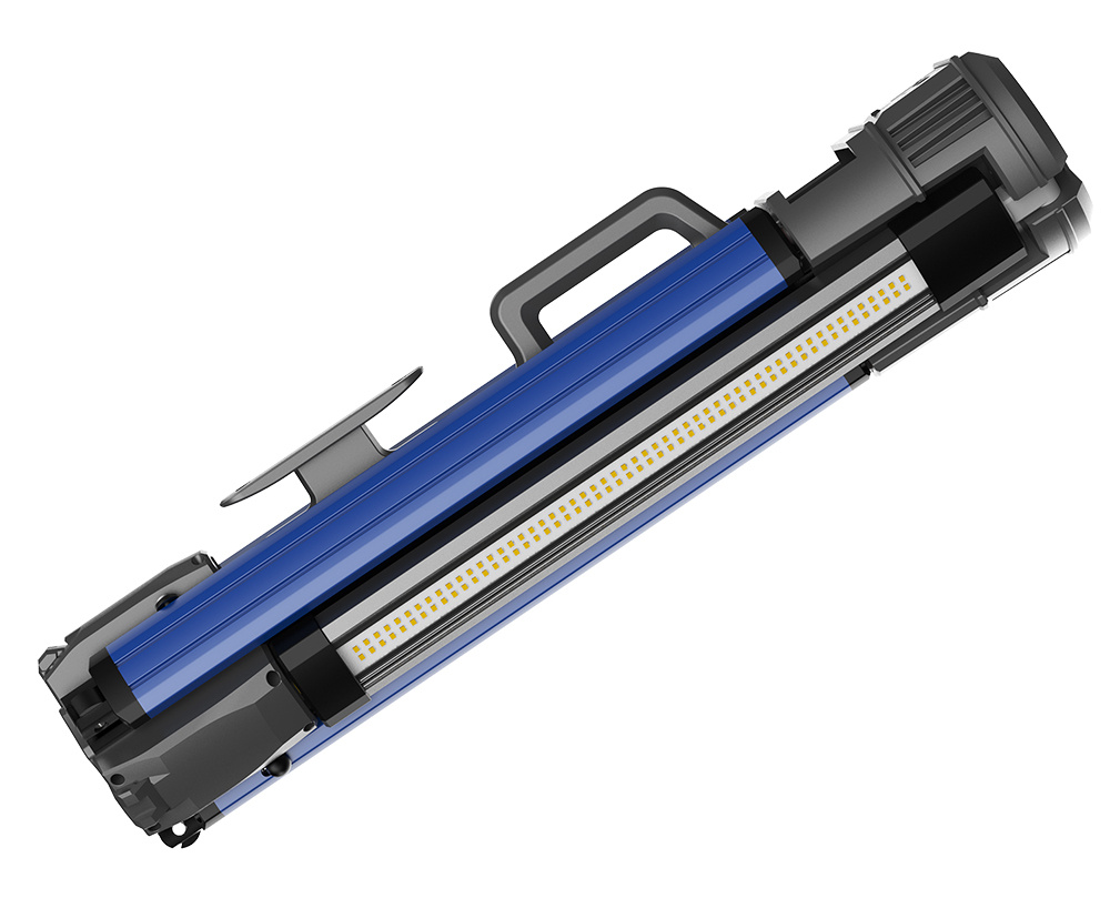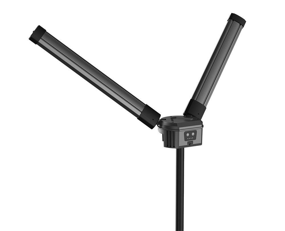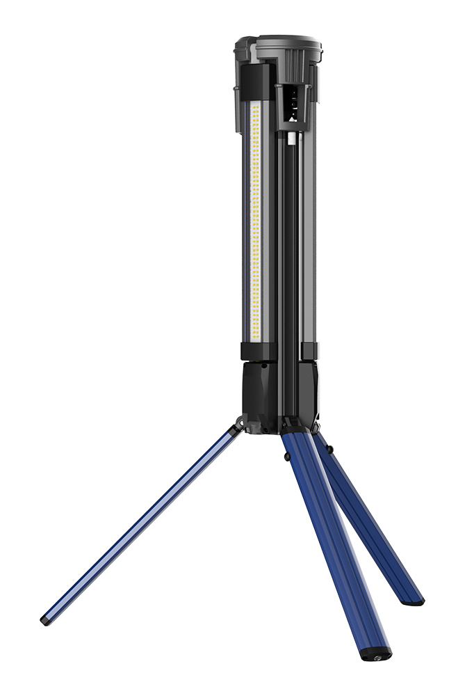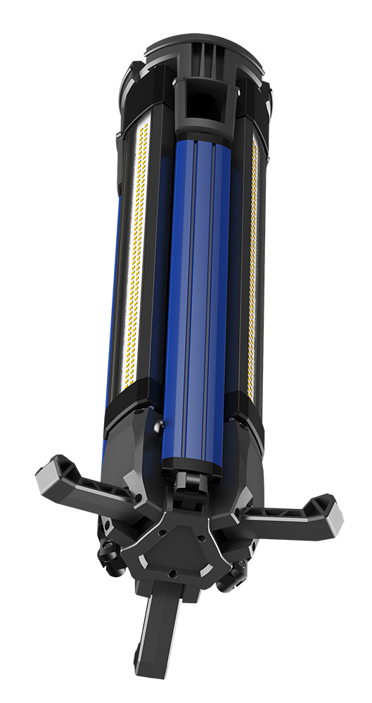 • Flexibilní použití: Světlo lze použít i ve složeném stavu – stačí otočit jednotlivá světla směrem ven a vysunout nožičky pro stabilní postavení.