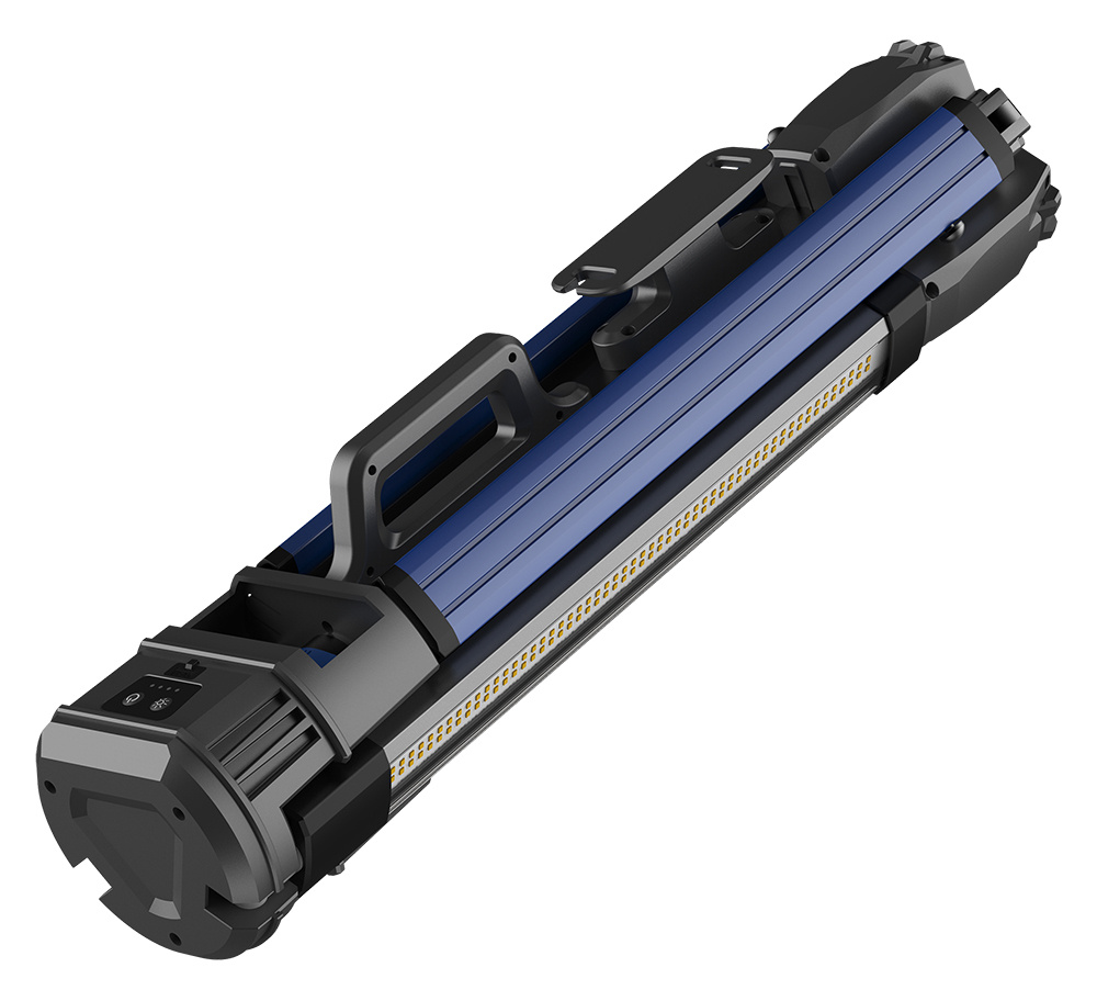 Svítivost 1500 lm - 5000 lm - 10000 lm (nízká - střední - vysoká) • barva světla studená - teplá, Ra 80 • zdroj světla SMD • kapacita baterie 14,6V / 4000mAh • doba nabíjení 4 hodiny (přes adaptér) • provozní čas 5 hodin (nízký režim) - 2,5 hodiny (střední) - 1 hodina (vysoký režim) • odolnost IPX4 / IK07 • 3 režimy svícení • hmotnost 5500 g • rozměry 220 x 15 x 15 cm (rozložené), 64,7 x 15 x 15 cm (složené) • 4 LED indikátory baterie