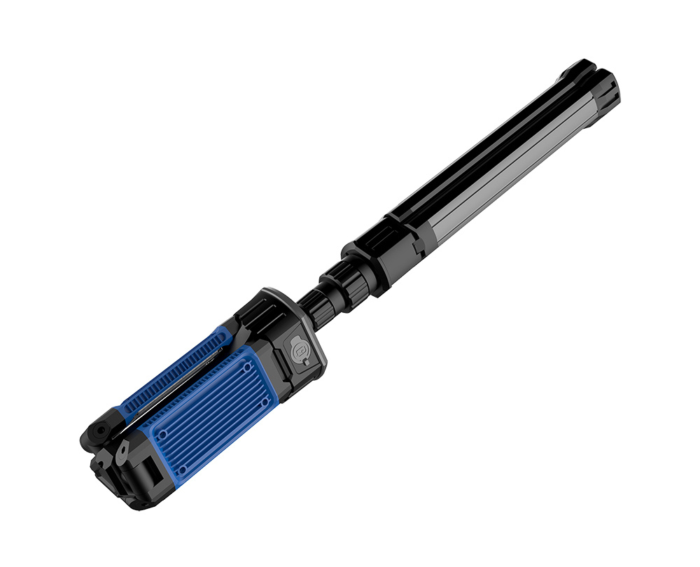 Snadno ho složíte i rozložíte, a pomocí vestavěného stativu ho lze nastavit až do výšky 1,7 metru. V nouzové situaci může fungovat jako powerbanka s výstupem USB-A.