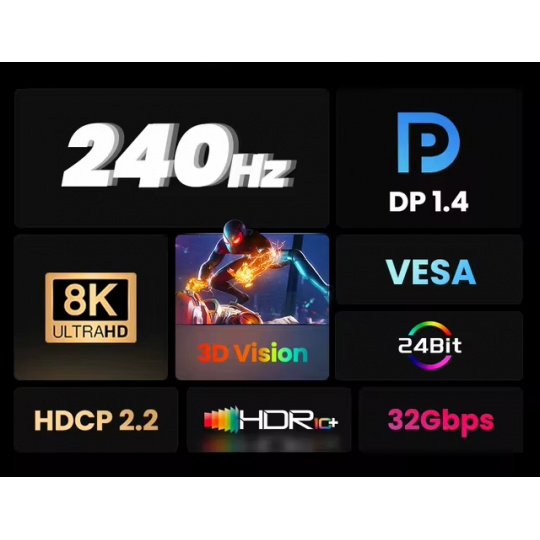 - 4K (3840×2160) při 144Hz a 24 bitová barevná hloubka