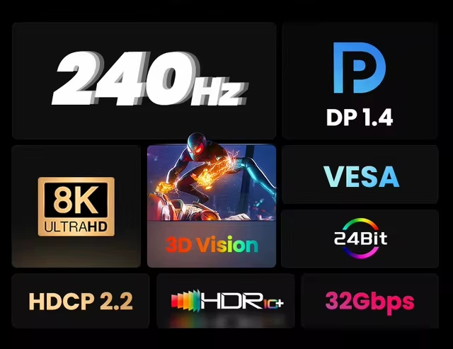 - 4K (3840×2160) při 144Hz a 24 bitová barevná hloubka