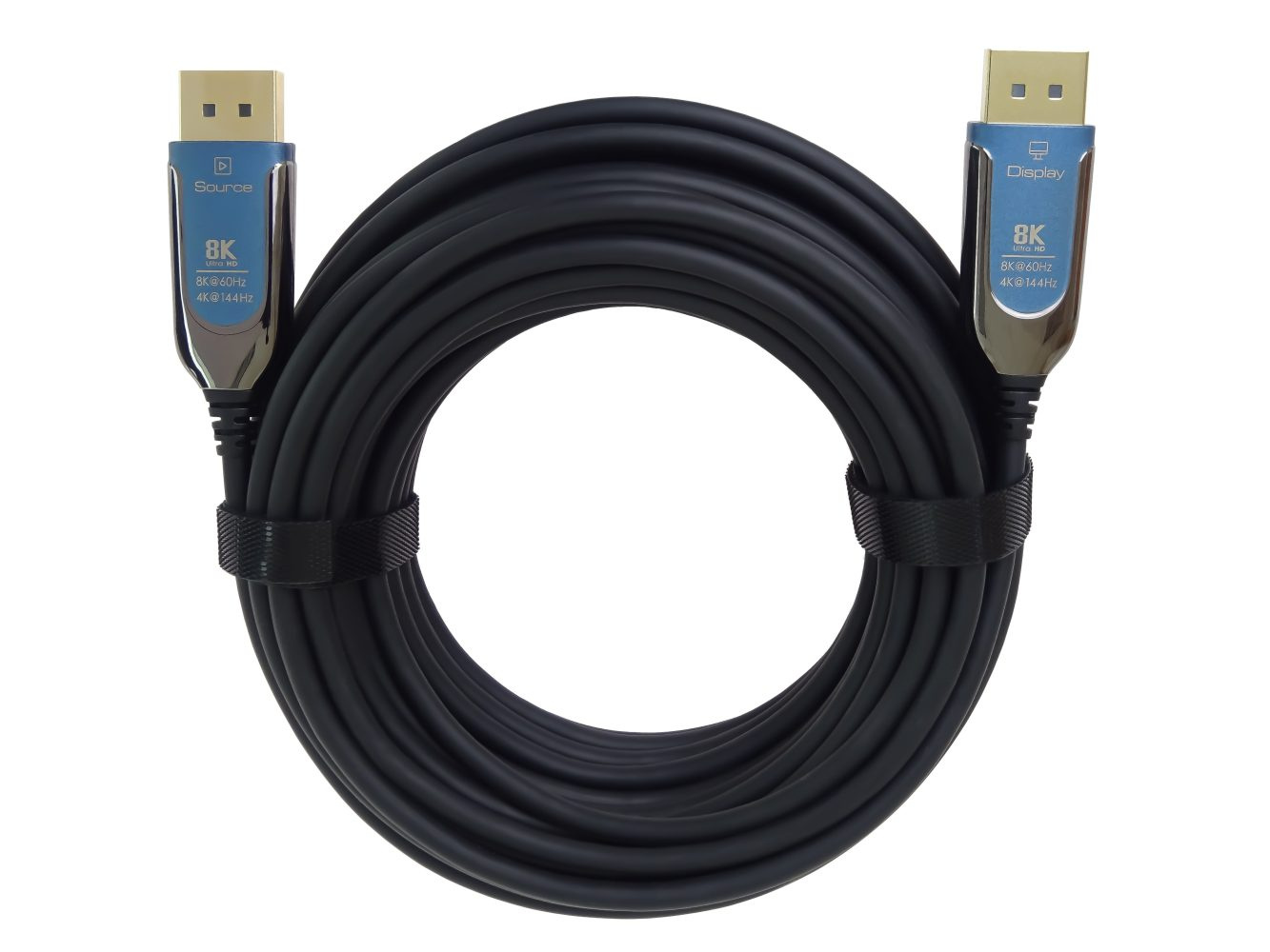 - optický kabel převádí elektrické datové signály na optické a zpět na elektrické signály, v konektorech je integrován speciální chip, proto je kabel jednosměrný a konektory jsou označeny SOUCE a DISPLAY