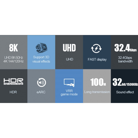 PremiumCord DisplayPort 1.4 přípojný kabel 32,4 Gbit/s, rozlišení 8K, kovové a zlacené konektory, 9m Kabel je vybaven standardem DisplayPort 1.4 a poskytuje obzvláště vysokou šířku pásma, ideální pro plynulé přehrávání obrazu bez trhání obrazovky nebo trhání při hraní her a rozlišení ostré jako břitva s rozlišením až 8K nebo 4k. Špičková konstrukce kabelu jej předurčuje pro všechny druhy instalací. Jedná se o flexibilní prémiový kabel s tenkými kovovými konektory, ochranou proti ohybu a barevně sladěným textilním kabelem (opletený textilní plášť kabelu monitoru je příjemný na dotek a šetrný k citlivým povrchům). DisplayPort 1.4 zvyšuje maximální datovou rychlost o 50% oproti rychlostem datového přenosu DisplayPort 1.2 na 32,4Gbit/s. Technické parametry Maximální rozlišení: - 8K (7680x4320) při 60Hz a 24 bitová barevná hloubka - 5K (5120x2880) při 60Hz a 30 bitová barevná hloubka - 4K (3840×2160) při 144Hz a 60Hz a 24 bitová barevná hloubka - 2K (2560 × 1440) při 240Hz a 165Hz - FULL HD 1080p (1920x1080) při 240Hz - podporuje HDCP 2.2 a HDCP1.4, podporuje 3D a EDID - podporuje FreeSync a G-Sync, Dynamic HDR a také 32 audio kanálů a mnoho oblíbených audio formátů, např. DTS-HD Master Audio * Verze DisplayPort 1.4 * Maximální datový přenos: 32,4 Gb/s * Podporovaná barevná hloubka: (30 Bit), True Color (24 Bit) * Konektory: DisplayPort (20pinů) male <=> DisplayPort (20pinů) male * 20-vodičový kabel, dvojité stínění, 100% měděný vodič průřezu AWG26 * Pozlacené kontaktní plochy zajišťují optimální přenos signálu a zabraňují korozi * Kovové hliníkové krytky konektorů * Tloušťka kabelu: 8,5mm * Kabel s měkkým bavlněným opletem: barva černo-šedá * Barva konektorů: Space Grey * Balení v PVC sáčku s EAN kódem a popisem * Délka kabelu: 9 m